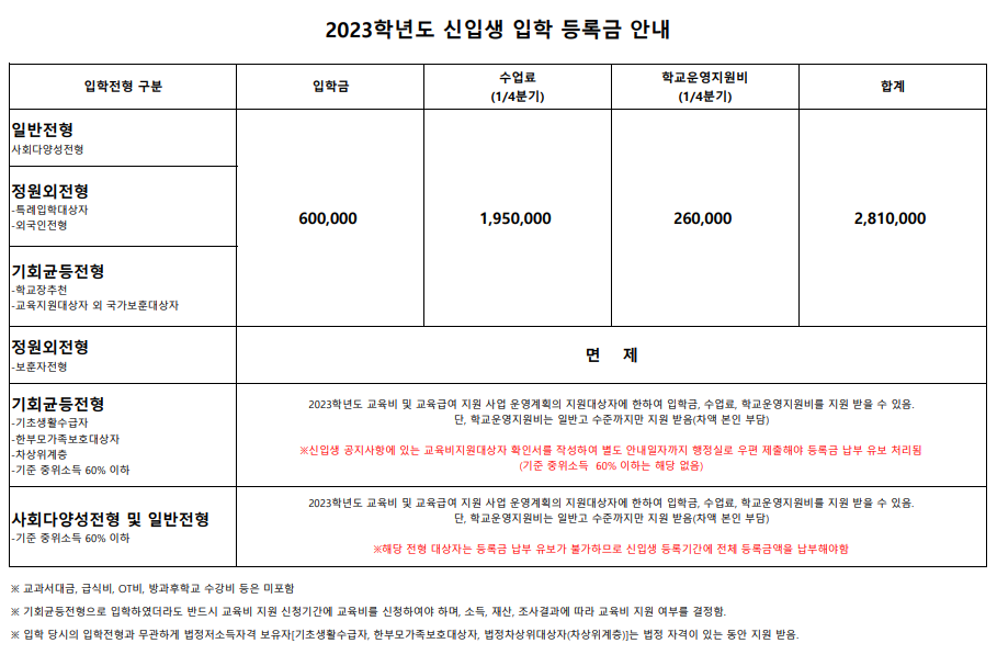 2023Çг⵵ ½ÅÀÔ»ý ÀÔÇÐ µî·Ï±Ý ¾È³»