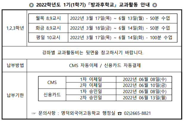 Á¦52È£ 2022Çг⵵ 1±â(1Çбâ) ¹æ°úÈÄÇб³ ±³°úȰµ¿ºñ Ãâ±Ý ¾È³»