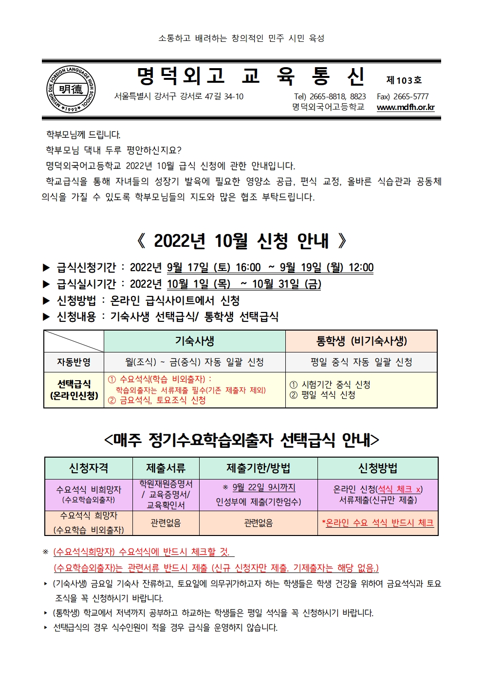 Á¦103È£ 2022³â 10¿ù ±Þ½Ä ½Åû ¾È³»