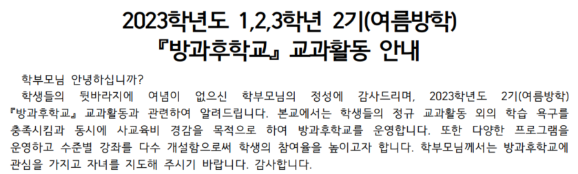 Á¦95È£ 2023Çг⵵ 1,2,3Çгâ 2±â(¿©¸§¹æÇÐ) ¹æ°úÈÄÇб³ ±³°úȰµ¿ ¾È³»