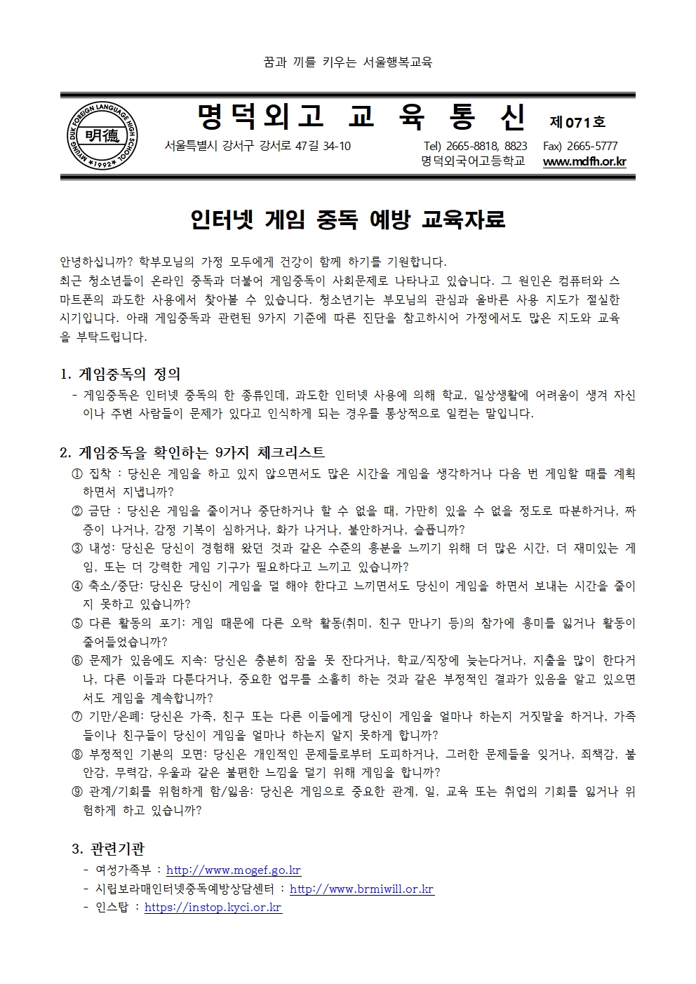 Á¦71È£ ÀÎÅÍ³Ý °ÔÀÓ Áßµ¶ ¿¹¹æ ±³À°ÀÚ·á