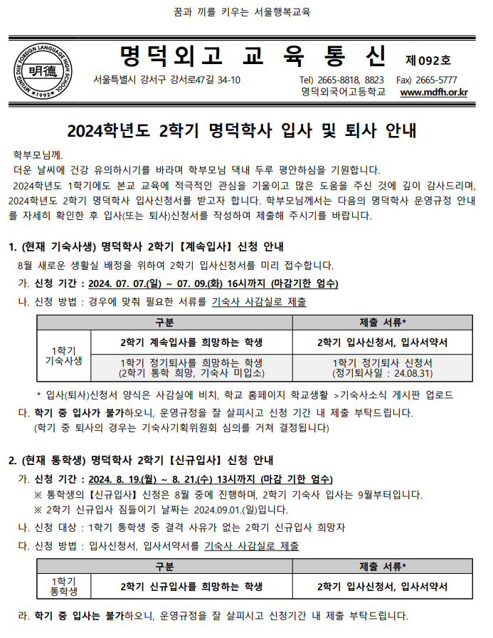 Á¦92È£ 2024Çг⵵ 2Çб⠸í´öÇлç ÀÔ»ç ¹× Åð»ç ¾È³»