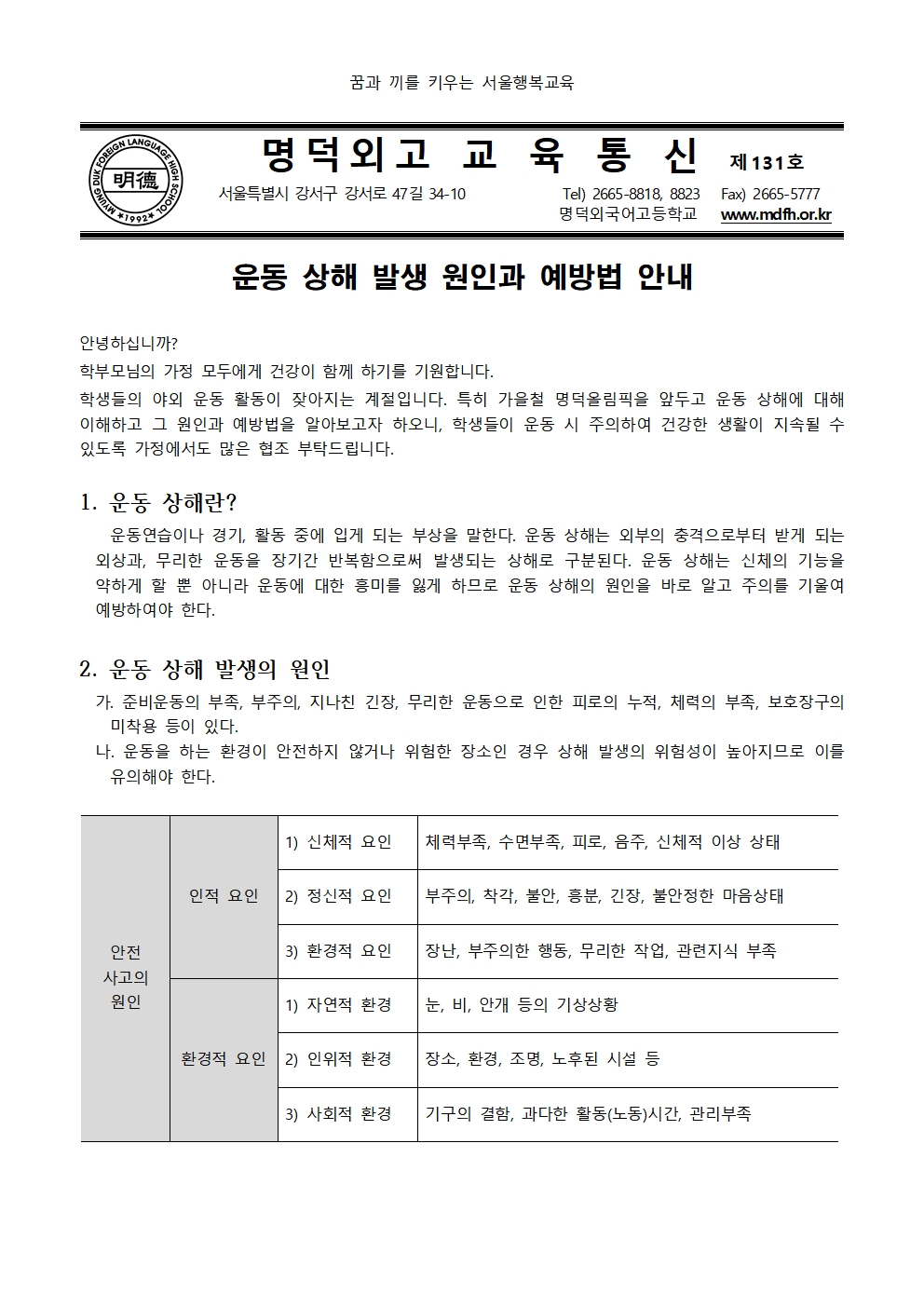 Á¦131È£ ¿îµ¿ »óÇØ ¹ß»ý ¿øÀΰú ¿¹¹æ¹ý ¾È³»