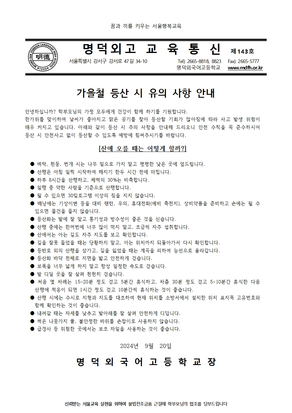 Á¦143È£ °¡À»Ã¶ µî»ê ½Ã À¯ÀÇ»çÇ× ¾È³»