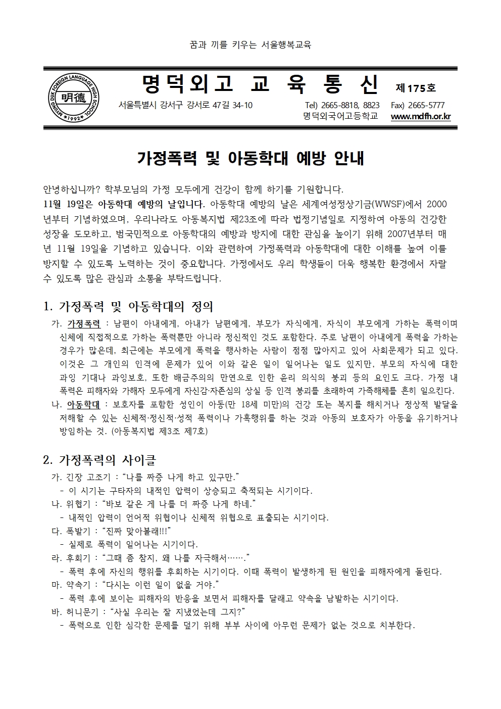 Á¦175È£ °¡Á¤Æø·Â ¹× ¾Æµ¿ÇÐ´ë ¿¹¹æ ¾È³»