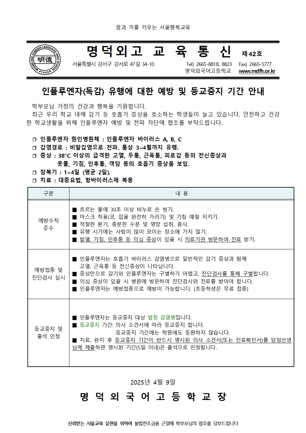 Á¦42È£ ÀÎÇ÷翣ÀÚ(µ¶°¨) À¯Çà¿¡ ´ëÇÑ ¿¹¹æ ¹× µî±³ÁßÁö ±â°£ ¾È³»