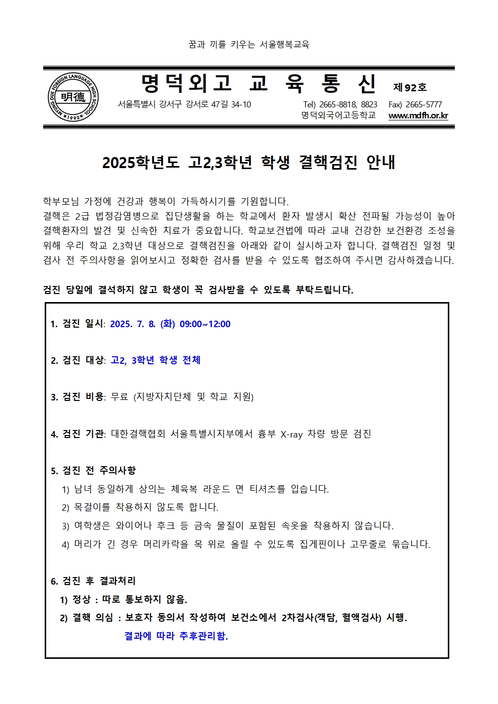 Á¦92È£ 2025Çг⵵ °í2,3Çгâ Çлý °áÇÙ°ËÁø ¾È³»
